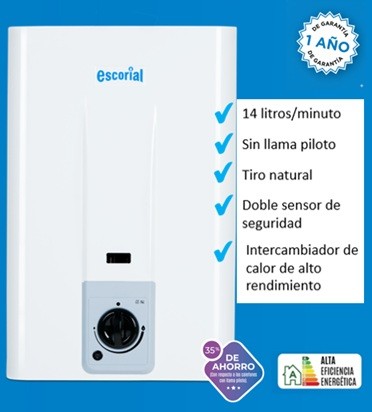 • Triple sistema de seguridad: - Interrupción del paso del gas ante la ausencia de llama. - Apagado automático ante un aumento excesivo de temperatura en el agua, - Apagado automático ante una mala evacuación de gases de la combustión.