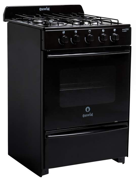 Color negro con laterales y puerta de horno de vidrio en color negro.